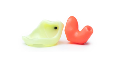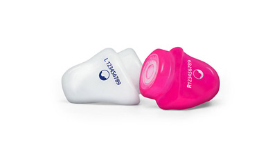 Wir fertigen Snug-Otoplastiken aus starrem Acrylat. Dieser Werkstoff ist widerstandsfähig und extrem langlebig. Die Oberfläche der Snugs ist matt poliert. Weiß ist Standard-Farbe, auf Wunsch fertigen wir auch Schwarz und Transparent.